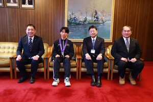 「第75回全国高校駅伝」で大会新記録で優勝した福島県「学法石川高校」の保芦摩比呂さんが表敬訪問に訪れました。
