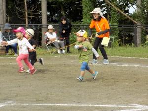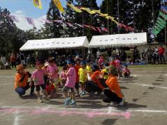 運動会のラストは、真剣勝負の3歳以上児リレーです。当日まで何度も対決をしてきました。子どもたちの頑張りが伝わり、見守る大人も手に汗を握る戦いでした。大きい子が小さい子を可愛がって面倒をみてくれて、小さい子は大きい子に憧れて、お互いの絆がうんと深まった運動会でしたね。