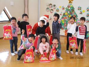 クリスマスを楽しみにして、自分たちでツリーを製作してサンタさんが来てくれるのを待っていた子どもたち。12月24日(金曜)、今年も大石田保育園にやってきてくれました!小さい組さんたちはちょっぴりドキドキだったかな。大きい組さんたちは、しっかり「ありがとう。」と言ってプレゼントを貰っていました。サンタさんと記念写真をパチリ!給食は、クリスマスのスペシャルランチ!みんな笑顔いっぱいでした。