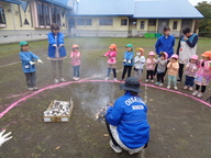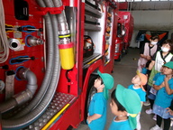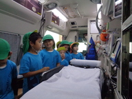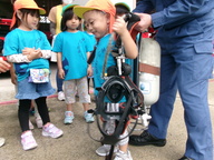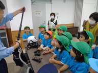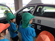 10月1日(水曜)、3・4・5歳児が尾花沢市の警察署と消防署へ行きました。警察署では、帽子を被らせてもらったり警棒や手錠などを触らせてもらい、かっこいいパトカーにも乗せてもらい笑顔いっぱいの子どもたちでした。消防署では、ピカピカの消防車と救急車を見て目をキラキラさせてお話を聞いていました。救急車の中に入り設備を見たり、消防士さんの重い防護服を着せてもらい貴重な体験となりました。