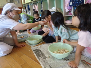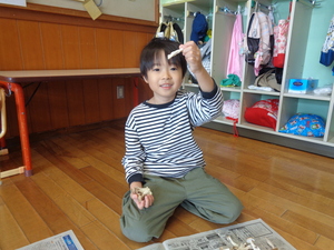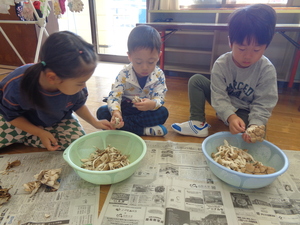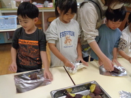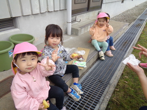10月22日(水曜)、やきいも会がありました。5月に植えたさつまいもがたくさん収穫となり、みんなこの日をとても楽しみにしていました。火を囲み煙の匂いを嗅ぎ、焼けるまでの間に歌を歌ったりして楽しみました。焼きたてのさつまいもは、園の全員で美味しくいただきました。とっても甘くて美味しい美味しい焼いもでした。