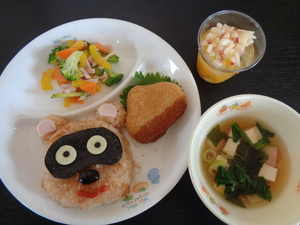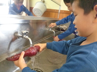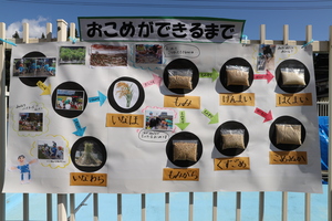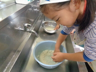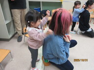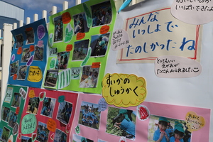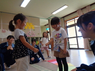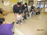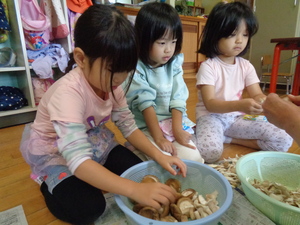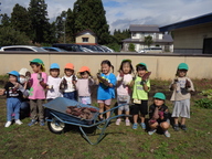 10月17日(金曜)、いも煮会がありました。田んぼの先生の今野さんと畑の先生の佐藤さんをお招きし、3・4・5歳児の親子が参加しました。前日は土砂降りだったので天候が心配されましたが、てるてる坊主のお陰で暑いほどの秋晴れとなりました。お世話になった今野さんと佐藤さんへ感謝を伝える会も開きました。みんなで田植えをし収穫された新米を使い、おにぎりクッキングも楽しみ、おにぎりといも煮をお腹いっぱい食べて大満足の子どもたちでした。