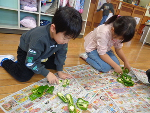ピーマン種取りのお手伝い