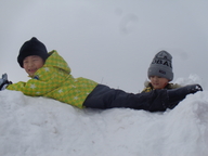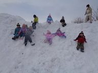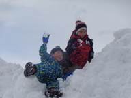 雪の壁に登ったよ
