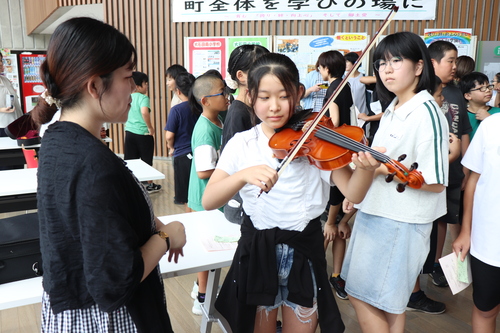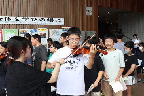 会が始まる前に、全員がバイオリン体験を行いました。