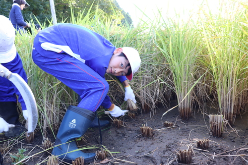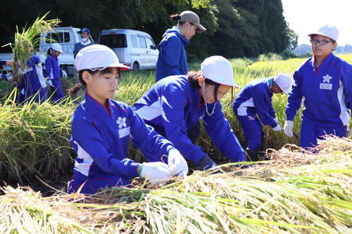 感謝の思いを込めて、一束一束稲を刈り取りました。