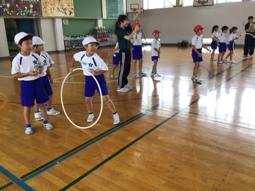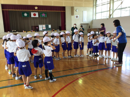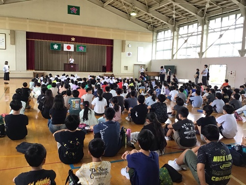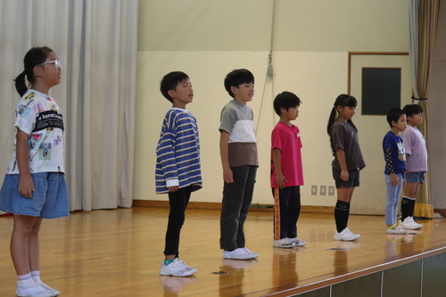 体育館に全員が集合して始まりの会を行いました。