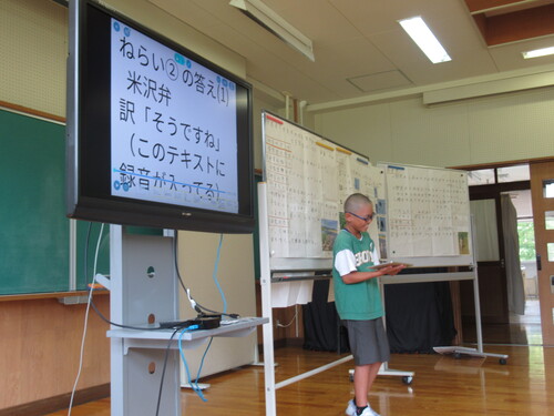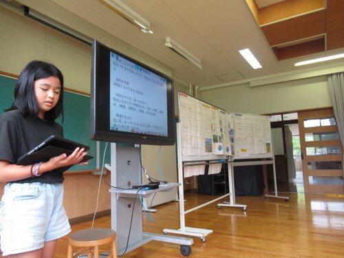 9月12日(金曜)、3年生以上が多目ホールに集まり、夏休みの自由研究の成果を発表する校内自由研究発表会を行いました。