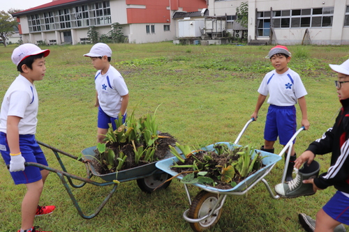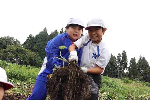収穫の秋です。北小の学校畑も収穫の時期を迎えました。