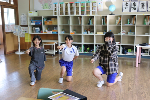 ★ダンスクラブの三人組のきめポーズ!元気に練習しています。