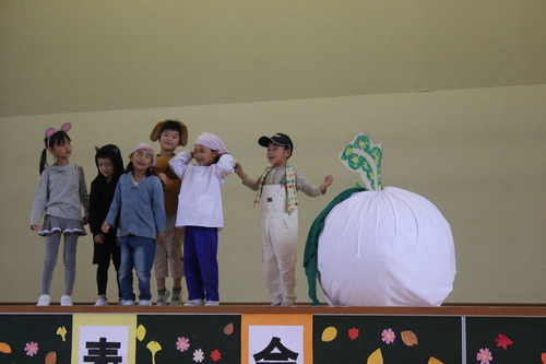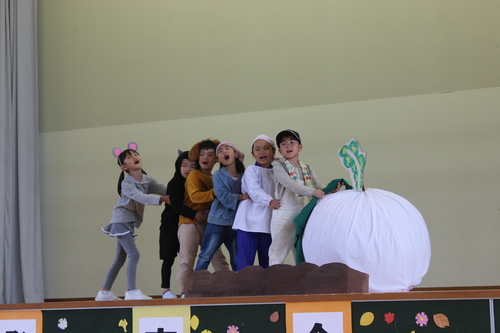 1年生は、初めての学習発表会です。国語で学習した「おおきなかぶ」を劇にして発表しました。
