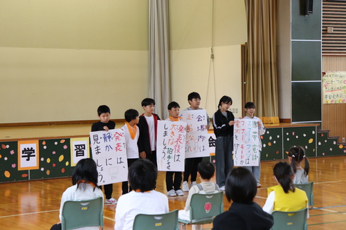 スローガン「みんなで協力 みんなだ楽しく 心を一つに思い出に残る学習発表会にしよう」というスローガンのもと、練習や準備をがんばってきた子どもたちです。