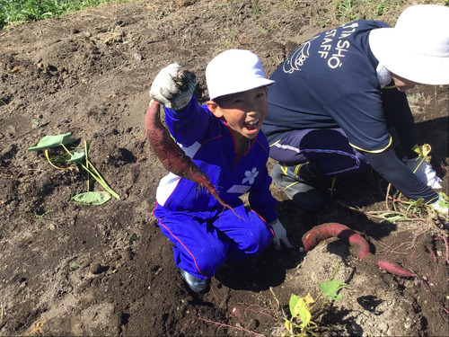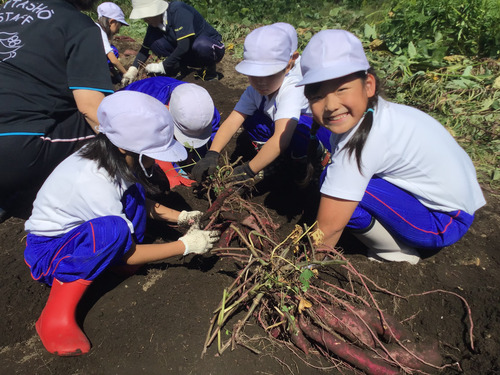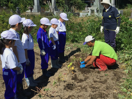 用務員さんのお話を聞いて、さっそく芋ほりです。