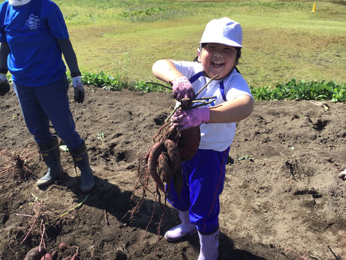 長いつるをひっぱると大きなさつまいもが出てきます。