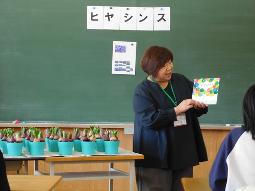 今、6年生の教室では人権の花としていただいた「ヒヤシンス」が、どんどん大きくなり、花を咲かせようとしています。