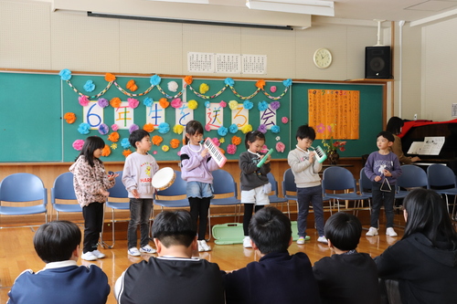 1年生は、6年生のいいところをかわいい川柳と合奏で感謝を伝えました。