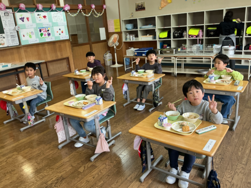 当番の仕事の説明を聞いて、給食着に着替えたり、しっかり手を洗ったりして出発です。