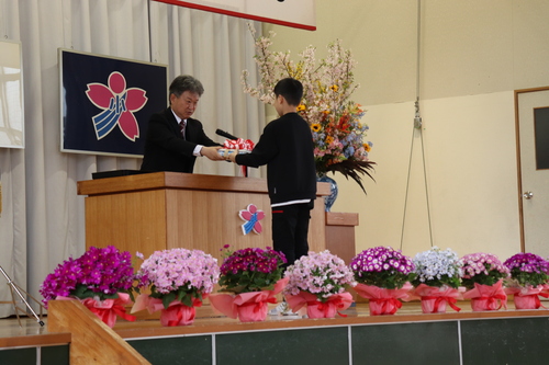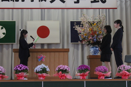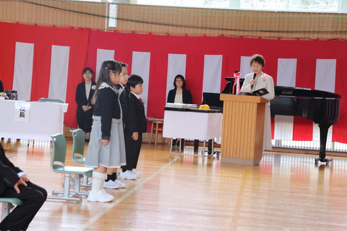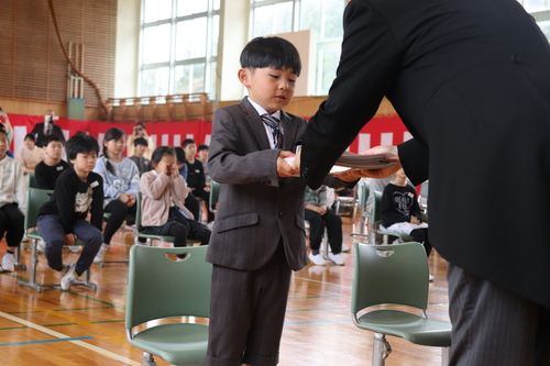 代表児童が、しっかり受け取り、気持ちを新たにしていました。