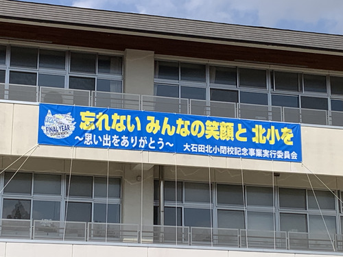 閉校記念事業のひとつの横断幕が校舎に掲げられました。
