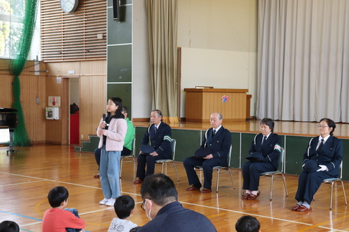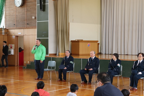 「大石田北小学校の閉校の1年になります。横断幕も掲げられました。ラストイヤーの1年 みんなのわくわくするようなチャレンジを期待しています。」というお話がありました。