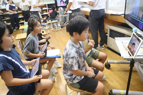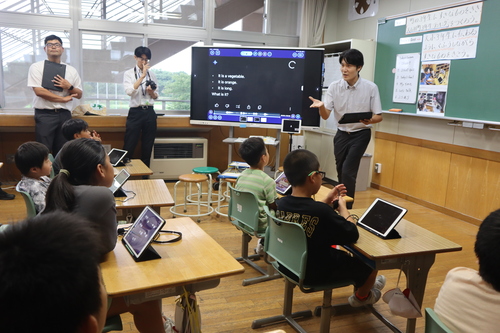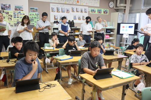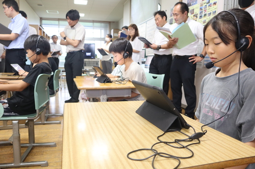 9月5日(金曜)、県メディア教育研究協議会 北村山地区協議会があり、3年生がICTを活用した外国語活動の授業を行いました。授業では、大石田小学校の3年生とオンラインでインタビューをする活動を見ていただきました。他の学校のお友達との英語でのやりとりを楽しみながら、インタビューすることができたようです。