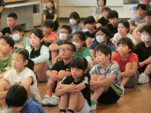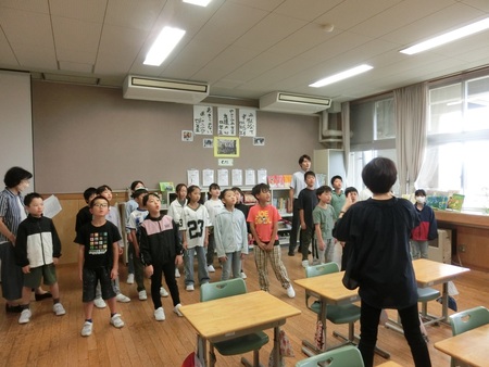 9月11日(木曜)に、町内の小学生全員が大石田小学校に集まり、各学年に分かれて一緒に学習を行いました。多い学年は40人を超える人数になり、いつもの学習とは全く異なる雰囲気の中での学習となりましたが、みんな集中して学習に取り組んでいました。