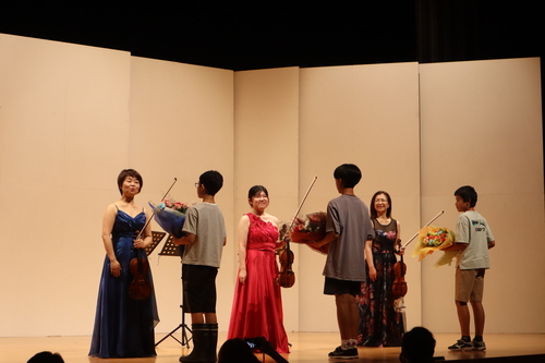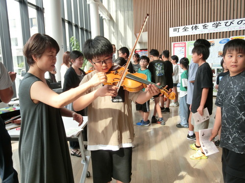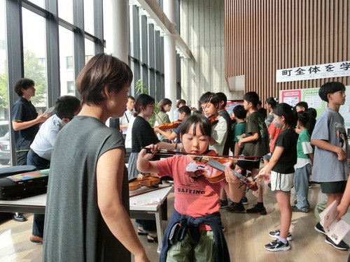9月8日(月曜)、町の虹のプラザを会場に芸術鑑賞教室がありました。小学校からは4・5・6年生が参加し、全員がバイオリンに触れる貴重な体験の時間もありました。芸術鑑賞教室では、バイオリンの演奏を聴くだけでなく、指揮者体験やバイオリンという楽器の歴史や、楽器のことなどのお話もありました。バイオリンの音色に心癒される時間となりました。