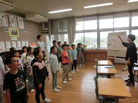 3・4年生は、町小中学校音楽発表会に向けて、毎朝、歌の練習を行っています。高音、低音のパートに分かれて、きれいな歌声を響かせて歌っています。本番に向けて、休み時間はリコーダーの練習にも熱が入っています。