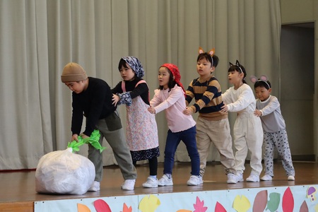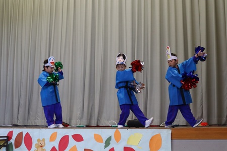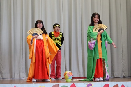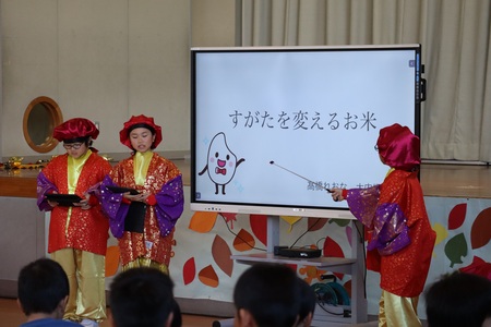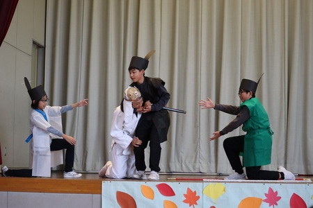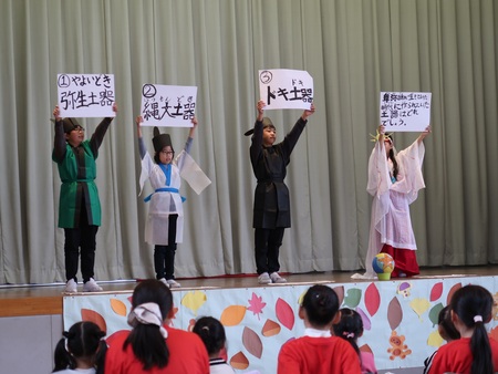 11月1日(土曜)に学習発表会を行いました。1年生は音読劇「大きなかぶ」、2年生は花笠踊りとリズム音楽、3・4年生は合唱とリコーダー奏、5年生は米について調べたことの発表と大黒舞、6年生は創作劇「れんごくうとゆかいな仲間たち」を発表しました。最後に、全校生で「手のひらを太陽に」を元気いっぱい歌いました。どの学年も、スローガンの「いきいき表現 みんなの学び」を達成するために、本番に向けた練習をがんんばってきたのが伝わる発表でした。保護者の方や地域の方に大きな拍手をいただき、みんなの心に残るすばらしい学習発表会となりました。