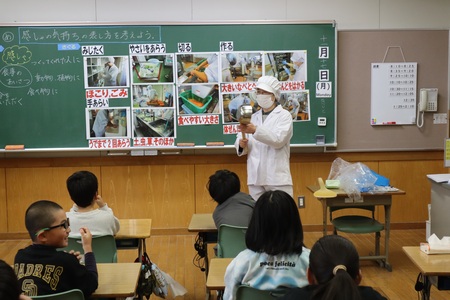 11月17日(月曜)に、栄養教諭の鈴木先生による食育指導を3年生に行っていただきました。給食センターでの調理の様子や実際に使っている調理器具も見せていただき、感謝の気持ちをもって食べることの大切さを学びました。