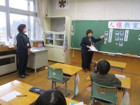 11月21日(金曜)に、町の人権擁護委員の方による人権教室がありました。人権とは何か?いじめに関するDVDを見て、みんなで考えました。