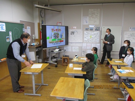 11月18日(火曜)、学校薬剤師の新田先生をお迎えし、5・6年生を対象に喫煙防止教室を行いました。煙がもたらす体への影響や中毒性があることなど、危険性があることなどを学びました。薬の正しい飲み方に関する実験も見せていただき、学びの多い時間となりました。