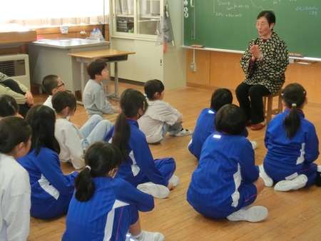 11月27日(木曜)に、大石田町「とんとむがすの会」の方による昔語りをしていただきました。低・中・高学年に分かれて、お話をお聞きしました。