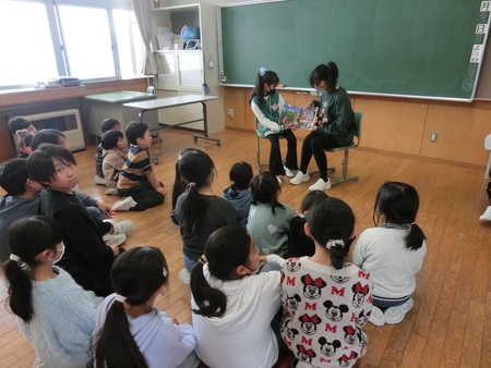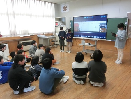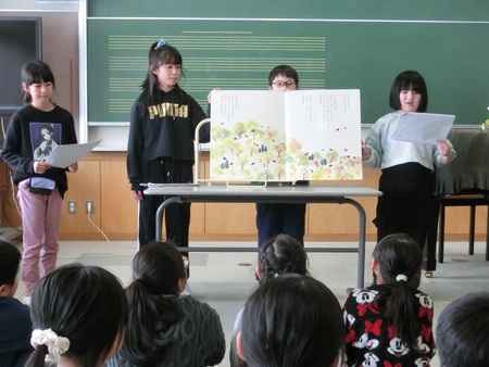 1月26日(月曜)の昼休みに、図書委員会による読み聞かせがありました。大型絵本やテレビに挿絵を投影した読み聞かせなど、3つの会場に分かれて行われました。楽しいお話に、みんな夢中で聞き入っていました。図書委員会のみなさん、ありがとうございました。