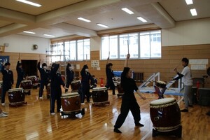 11月6日(木)、13日(木)、雪国鷹巣太鼓保存会のみなさまより、3年音楽の授業を行っていただきました。地域の伝統芸能である「雪国鷹巣太鼓」を通して、大石田町の伝統文化にふれることができました。また、和太鼓の姿勢、叩く位置など、基礎的奏法を学ぶことで、和太鼓の奥深さを知ることができました。