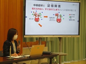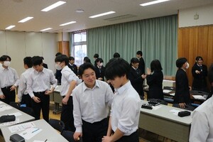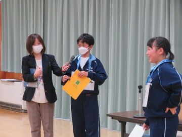 1学年では毎年、多様性あふれる社会において、家族や地域のみなさんとともに幸せな毎日を過ごすことができるよう、認知症への理解を深め、認知症の方との接し方を学ぶ講座を行っています。今年は町保健福祉課の柴田保健衛生主査さんと保健師のみなさんが、ロールプレイも交えながらわかりやすい授業を行ってくださいました。生徒のみなさんは、認知症の方はもちろんのこと、高齢者にも、そして誰にでも優しく思いやりをもって接していきたいという思いを強くしたようでした。
