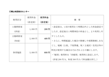 大石田町横山総合センター使用料改定について(PDF:63KB)
